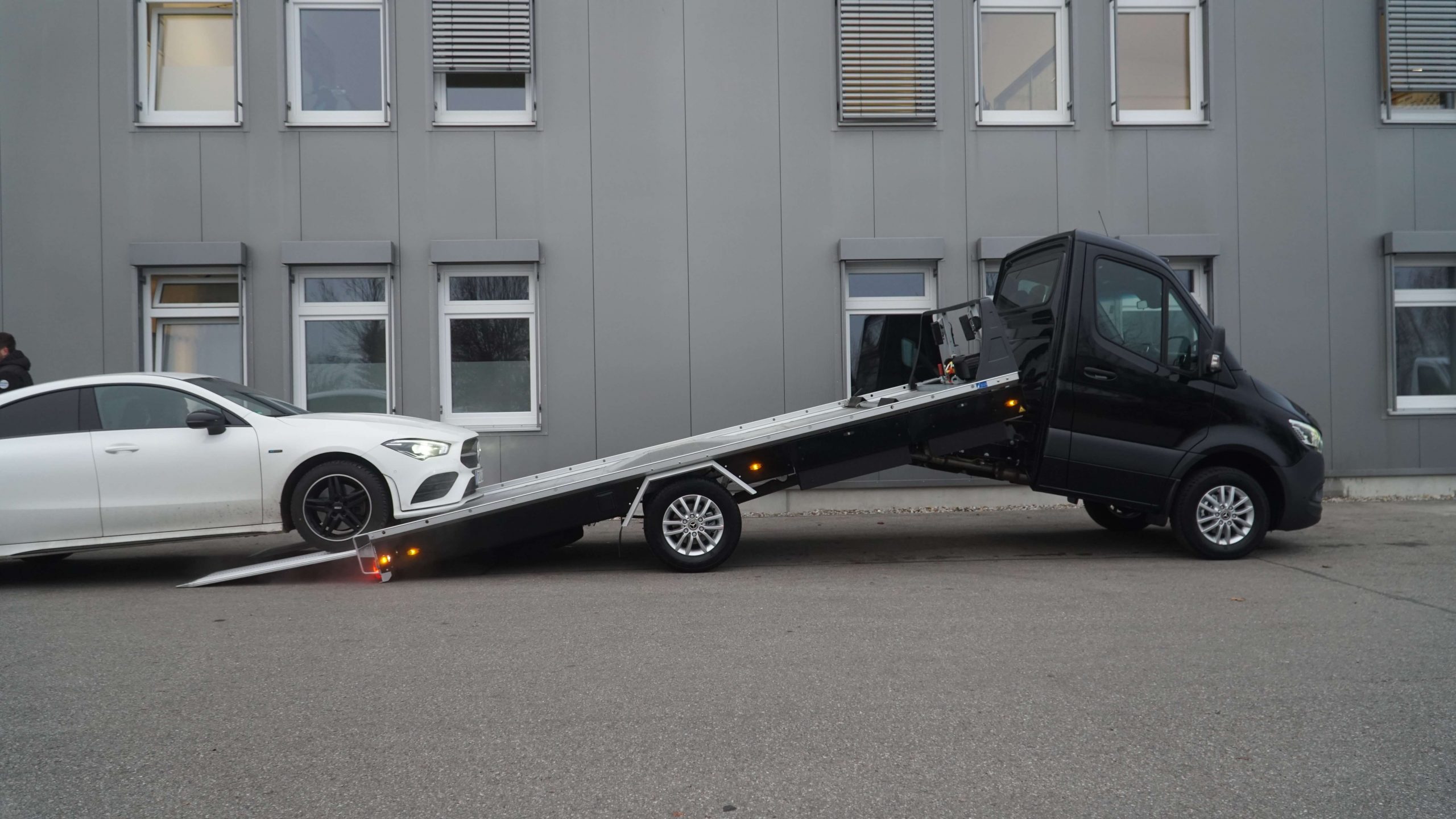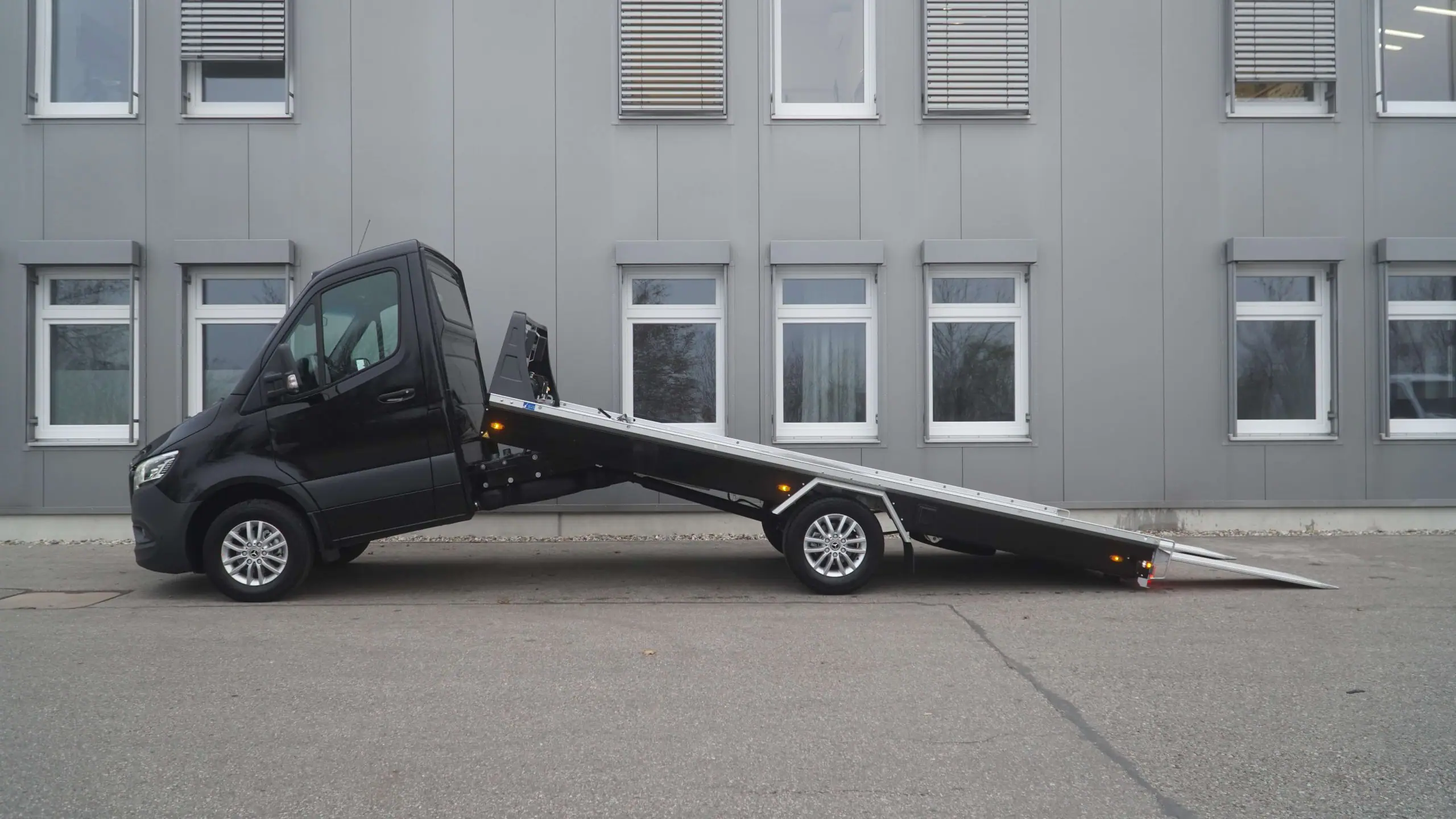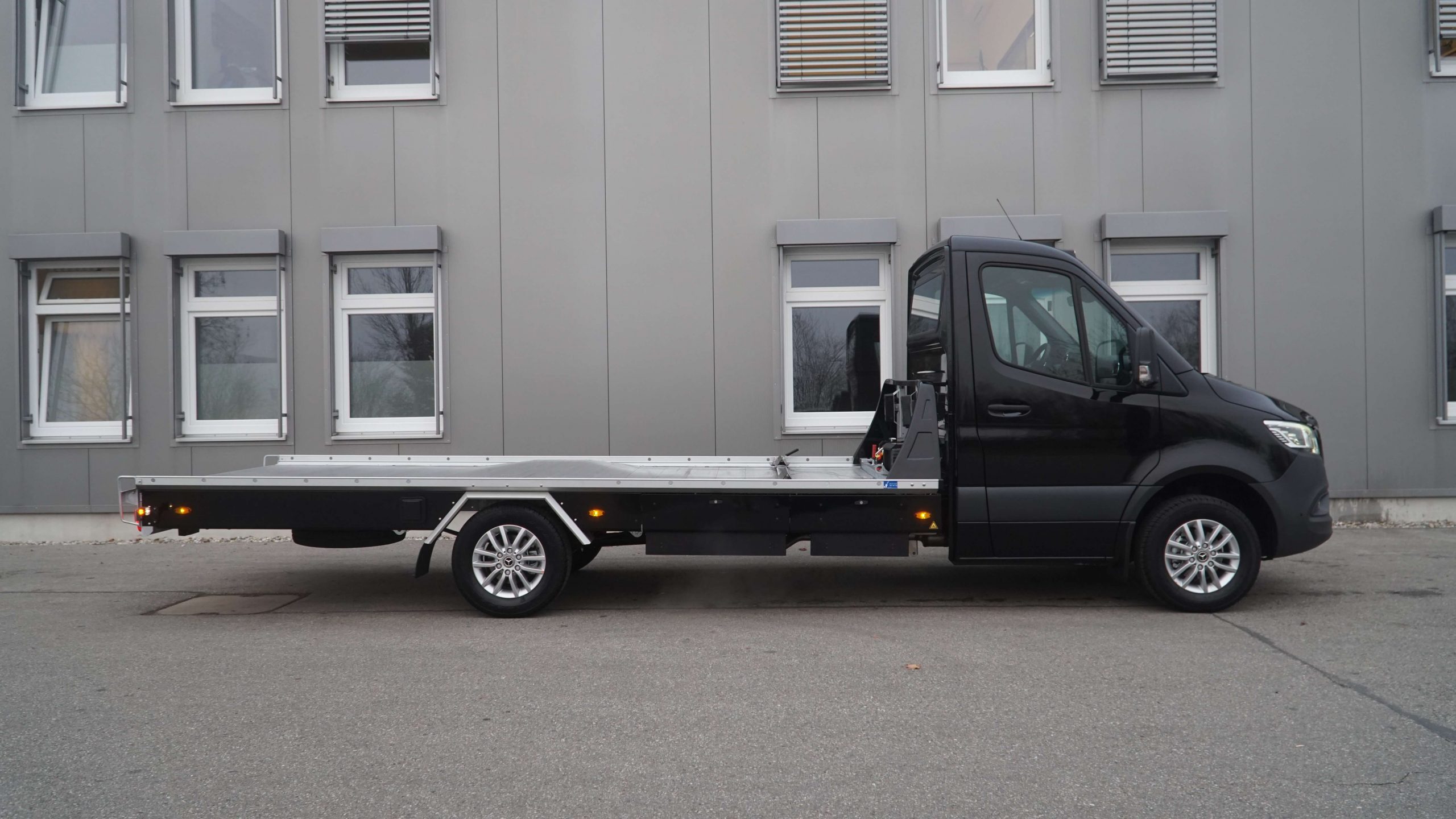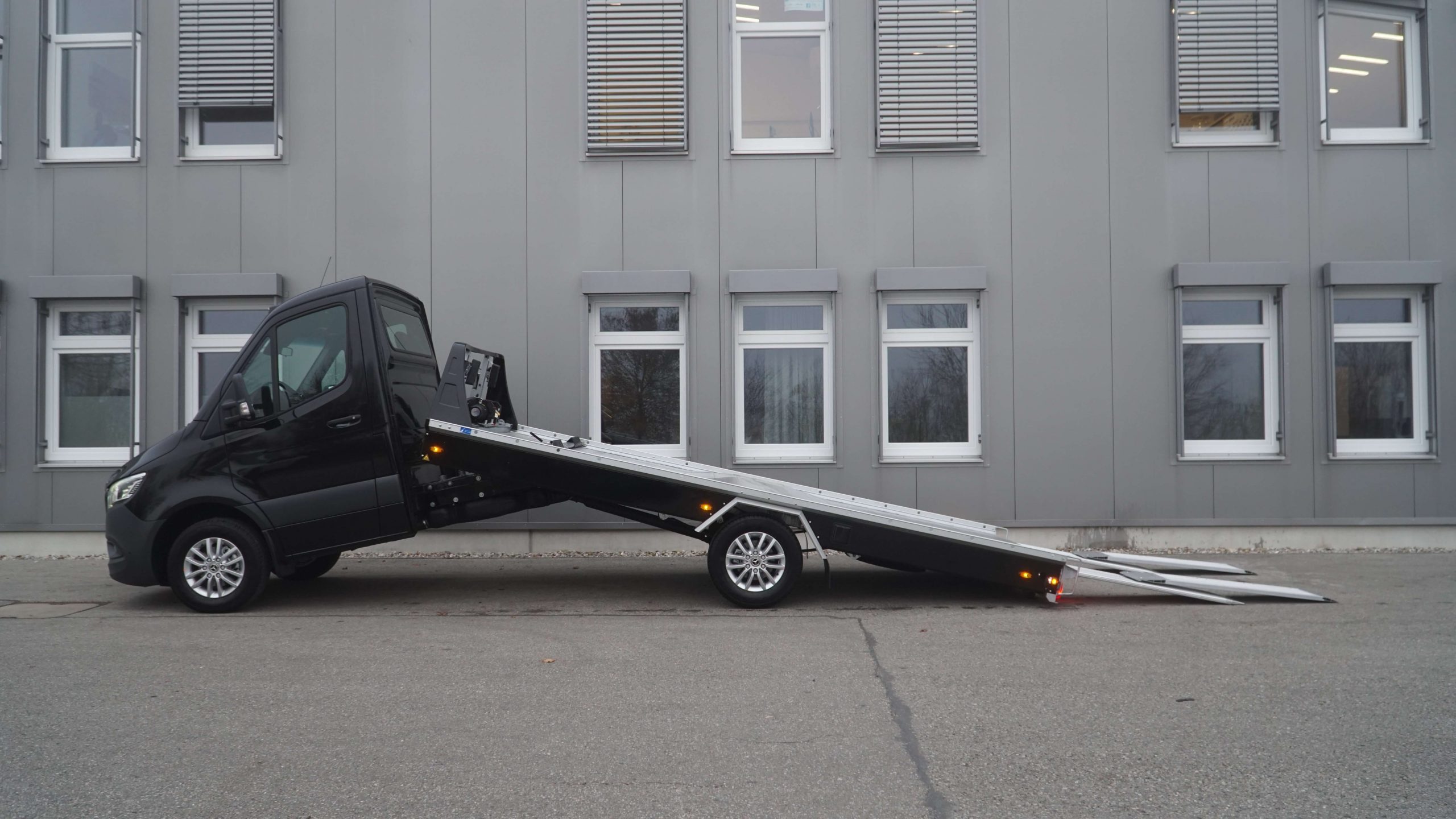 Serienausstattung - inklusive Luftfederung - Komplett mit Kippschere - Aufbau in Alu-/Stahl Compoundbauweise - Boden geschlossen mit Alu-Profilen mit Querrillen - 2 Auffahrrampen hydraulisch - 1 Werkzeugbox rechts - Alu-Radanschlagbügel - 1 Reserveradhalterung unter der Ladefläche - Anhängekupplung abnehmbar - Flyer klein - Arbeitscheinwerfer - E-Winde ComeUp inkl. Windenseil - Lackierung Seitenverkleidung